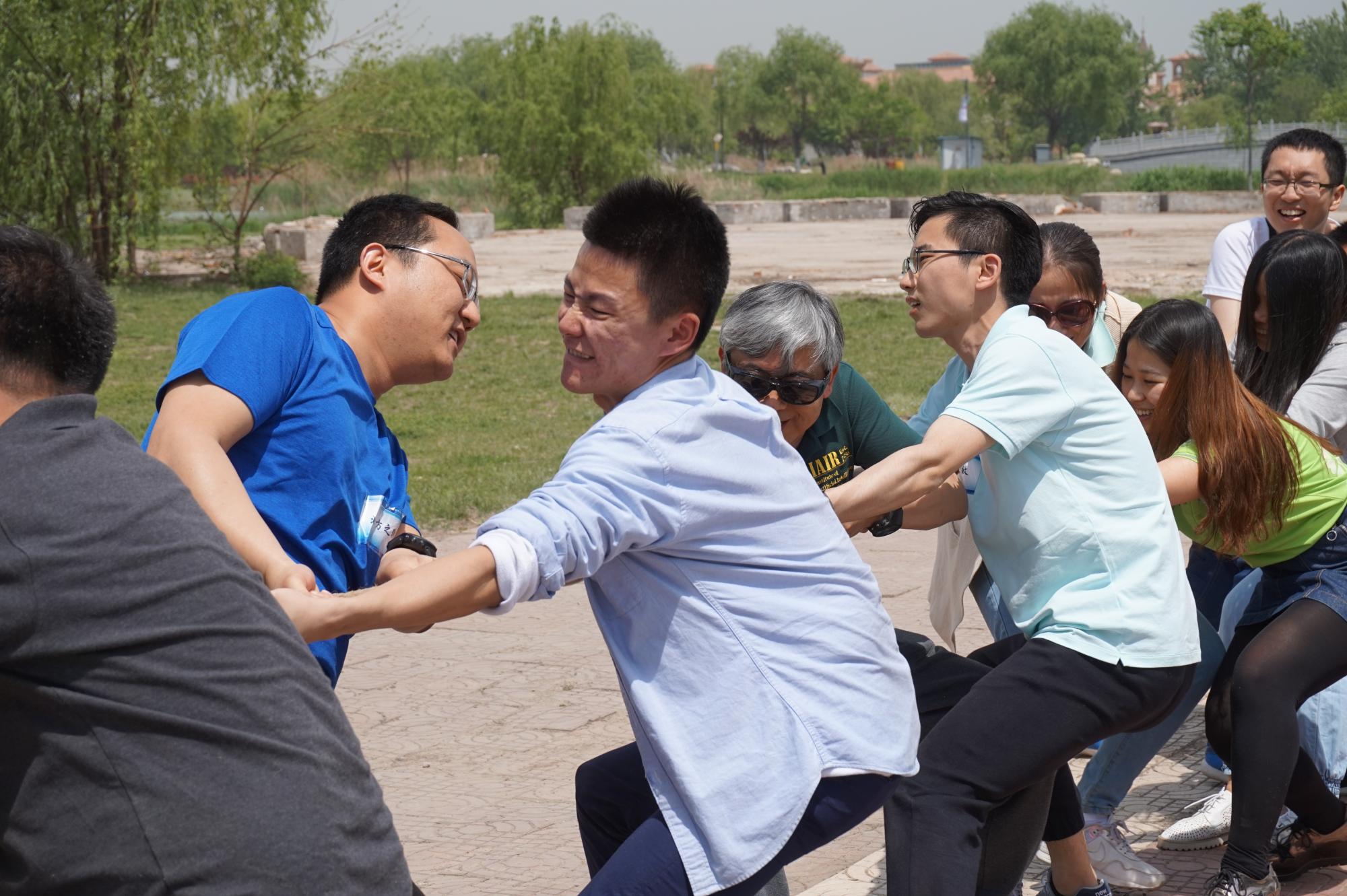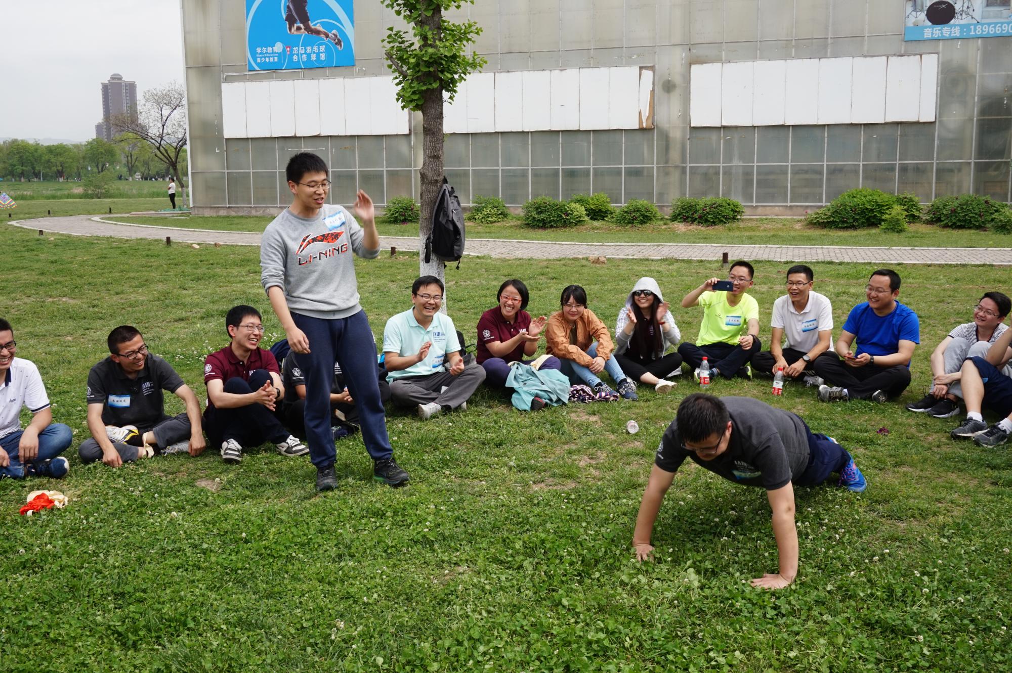 中午,完成长跑后,大家在欢声笑语中互相分享自带的午餐。稍作休息后,学生俱乐部组织大家进行了拔河和趣味游戏活动。首先,是考验团体协作力的拔河比赛,师生们热情高涨,各个队伍斗志昂扬。经过十分激烈的角逐,北方之狼队取得了胜利。虽然,拔河比赛胜负已分,但大家都意犹未尽,于是增加了一场男女趣味拔河赛,女生们全力以赴,在一片欢乐声中战胜了男生队伍。然后,大家进行了击鼓传花,五人四足等趣味游戏活动。集体活动结束后,一些老师和同学进行了个人才艺展示,博士生刘子熠的单口相声,伴随王迪的俯卧撑表演,更是让师生们大开眼界,纷纷上前去展示自己的才艺,师生们在一片欢声笑语中增进了友谊。