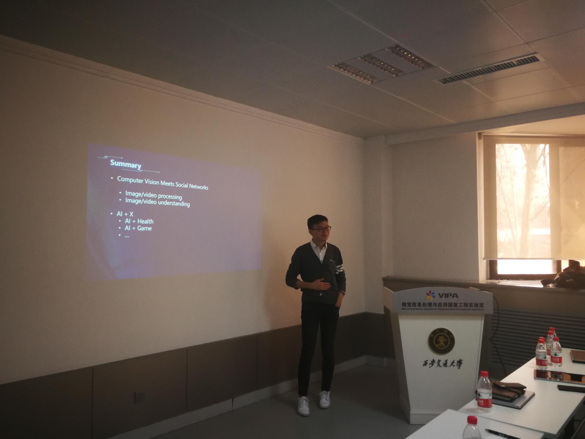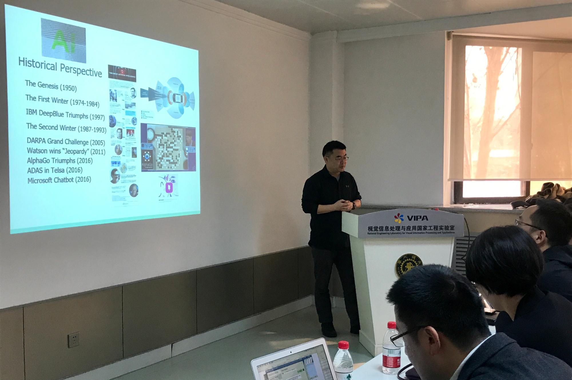 最后,马林博士激情昂扬地为师生阐述了他在“Image/Video Processing”、“Image/Video Analysis”和“Image/Video Understanding”等方面的研究成果。