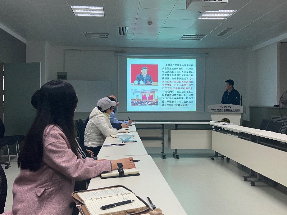 学院教工党支部魏平书记首先带领全体参会人员学习了十九届五中全会公报的要点,包括决胜全面建成小康社会取得的10方面决定性成就、到二〇三五年要实现的9方面远景目标、“十四五”时期经济社会发展的6方面主要目标、实现奋斗目标的12方面具体举措等。魏平书记强调,作为高校的教师党员,一定要深入学习和领会五中全会精神,将会议精神落实到自己日常工作中去。