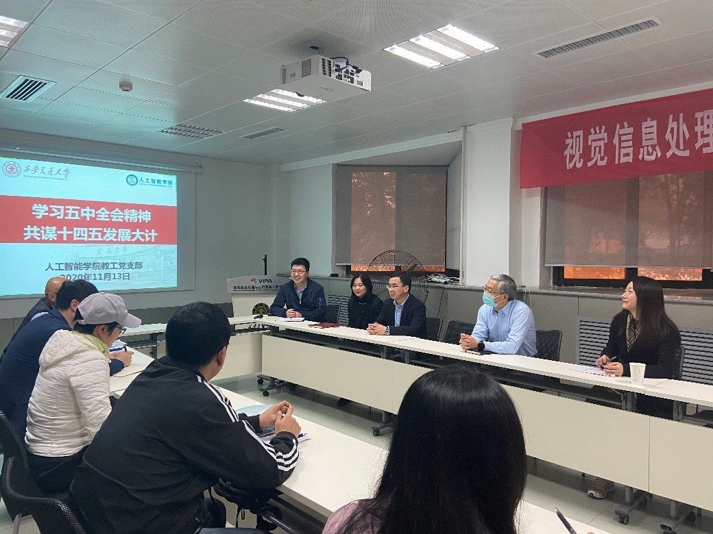教工党支部召开了以“学习五中全会精神,共谋十四五发展大计”为主题的学习讨论会议,支部党员共同学习和领会大会精神,并结合自身的实际体会进行了深入的交流。郑南宁教授、电信学部党委梁莉书记、禁漫
