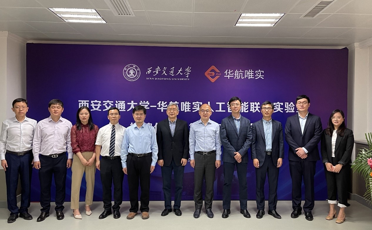 仪式上,郑南宁教授、夏智武董事长共同为联合实验室揭牌。辛景民教授与华航唯实副总经理刘浪作为双方代表为联合实验室签约,郑南宁教授、种道彤教授、夏智武董事长、程翔教授上台共同见证。