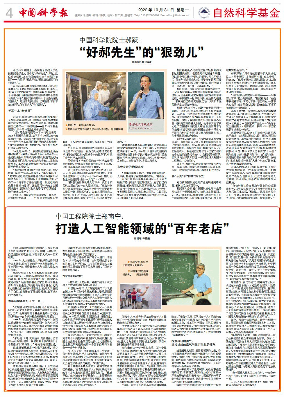 “它不仅支持了我的研究工作,更提升了我对科学思想、科学方法的认识。如果当年没有青年科学基金的支持,我在学术研究上的坚持与思考将缺乏验证和支撑,也很难想象我今天会有怎样的成长与蜕变。”郑南宁说。
