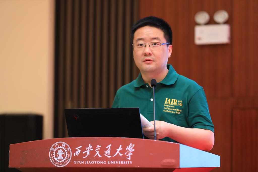 人机所副所长、学院执行院长辛景民教授总结了研究所和学院过去一年的标志性事件,包括获批人机混合增强智能全国重点实验室、获研究生国家级教学成果一等奖、学院独立设置等。他勉励广大师生,“心有所信,方能致远”,并希望大家认真聆听特邀专家的精彩报告,分享自己的真知灼见,推进学院科研工作新的发展。