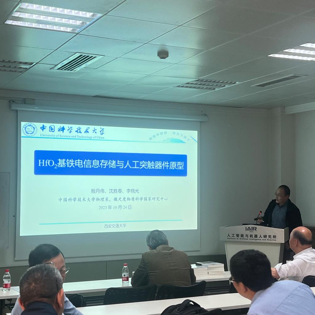 电子学院教授博士生导师,西安交大“青年拔尖人才”,做了有关《铪基忆阻器人工突触阵列:材料和器件》的报告。