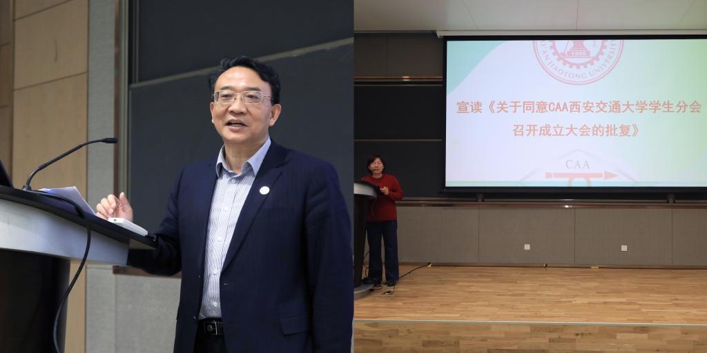 的历史渊源,指出中国人工智能的发展是从自动化这棵参天大树上生长出来的,“智能”两字第一次出现在中国的学科分类中是在自动化学科,并从西安交大自动化学科发展历史的角度,强调了学生分会成立的重要意义,鼓励交大学子弘扬西迁精神,积极参与学术与科研活动,为中国自动化领域做出更大的贡献。管晓宏院士在致辞中阐述了自动化学科在中国科技发展中的重要地位,讲述了自动化学科在机器人和控制论等各个领域的学科交叉和实践情况,表示将全力支持学生分会的建设和发展,并对学生分会提出了殷切的期望。席光副校长在致辞中充分认可西安交大自动化专业取得的成绩,强调了建立中国自动化学会学生分会的必要性,明确表示探索杰出人才的培养方式应由传统的教授培养延伸到学生群体的培养,并期望学生分会为西安交大和自动化学科建设做出更大的贡献。最后,张楠秘书长代表中国自动化学会致辞并宣读《关于同意中国自动化学会禁漫