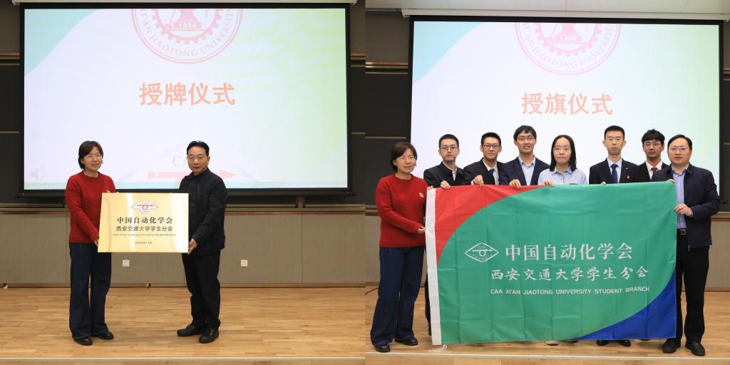 学生分会授牌、授旗和颁发聘书。吴宏春常务副院长、兰剑副处长代表学校接收授牌和授旗,并一起为当选的老师和同学们颁发聘书。中国自动化禁漫