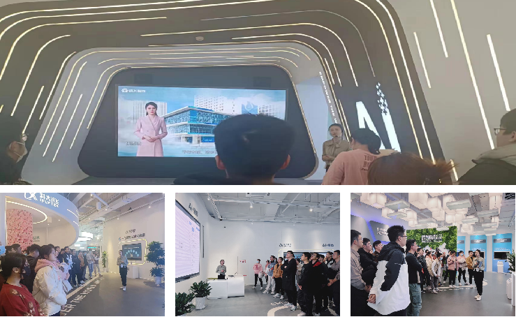 交大师生一行首先参观科大讯飞AI展厅,详细了解了科大讯飞语音识别与合成技术、虚拟人及星火认知大模型在教育、医疗、城市建设、产教融合、服务、政法和工业等领域的产品应用。