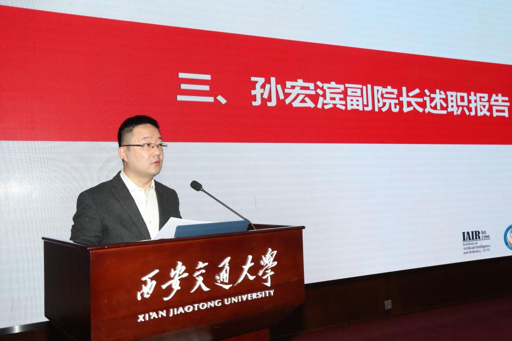 对在人工智能产教融合平台重大项目申报、国家研究生教学成果一等奖等申报材料的组织撰写过程中,做出积极贡献的郑南宁、辛景民、孙宏滨、刘剑毅、张雪涛等23名教师致以敬意;对牵头申报立项的国家重大(重点)科研项目负责人、各类奖项的获得者、获得国家级人才称号的教师表示祝贺;对在学院行政服务工作中表现优异的个人进行表彰,同时也对承担学院公共事务工作的班主任、辅导员、人机所俱乐部主席等青年教师表示由衷的感谢。