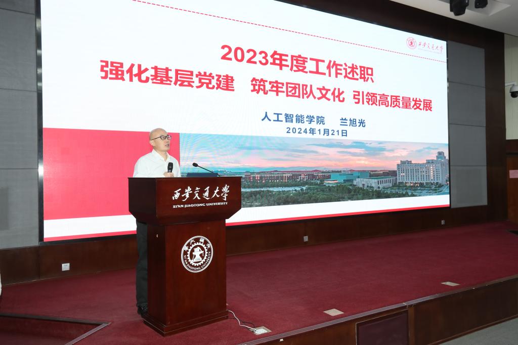 在学校党委的领导下高举习近平新时代中国特色社会主义思想伟大旗帜,牢记为党育人、为国育才使命,落实立德树人根本任务,胸怀“国之大者”,弘扬西迁精神,以实际行动坚定拥护“两个确立”、坚决做到“两个维护”,推进高水平科技自立自强。同时,兰书记也对个人的不足之处进行了深入剖析,对2024年的党建工作做了具体规划。