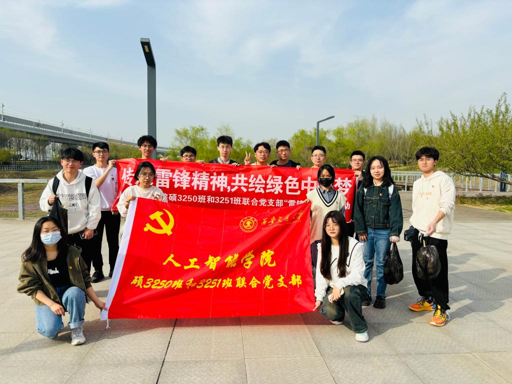 硕3250班和3251班联合党支部地党员和入党积极分子一起,于3月30日下午在新渭沙湿地公园举行了一场义务清理公园垃圾活动。