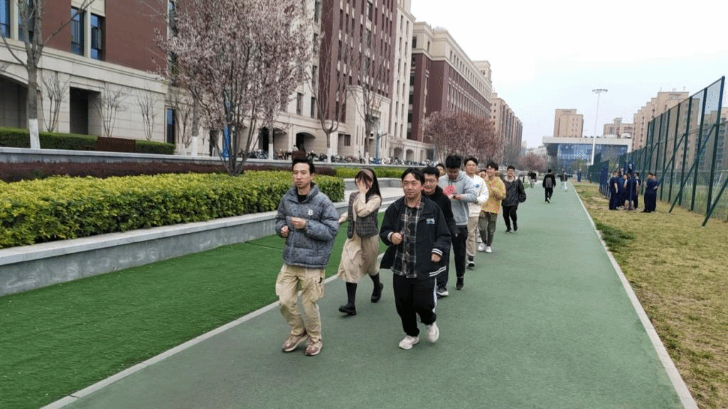 团委引导青年学子践行习近平总书记"健康第一"理念,以健康的体魄和昂扬的精神状态投身科研学习,研究生在集体运动活动,团队意识不断增强、人生志向更加坚定,为实现中华民族伟大复兴的中国梦贡献青春力量。
