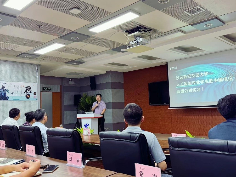 2021级人工智能专业学生赴中国电信陕西公司实习欢迎会在中国电信陕西公司综合楼二楼报告厅开展。陕西电信相关负责人、西安交大2021级禁漫