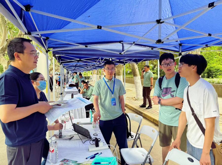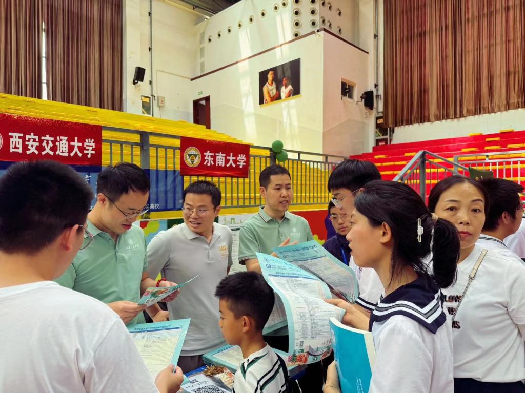 招生工作组杨勐、孙艺璇、杨曦、杨奔、李宝婷在现场和大家交流并解答高考招生问题,国家级领军人才陈霸东教授也专程来到现场与考生和家长深入交流,解答专业问题。