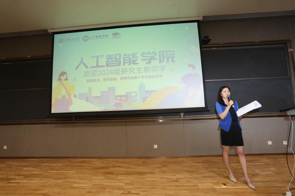 最后,学院党委书记兰旭光进行了总结发言。他对新生表示热烈欢迎,并鼓励大家珍惜大学时光,努力学习、勇于创新、积极参与校园活动和社会实践。兰书记还强调了学院的使命与担当,表示将一如既往地支持新生的成长与发展,共同推动人工智能事业的繁荣与进步。
