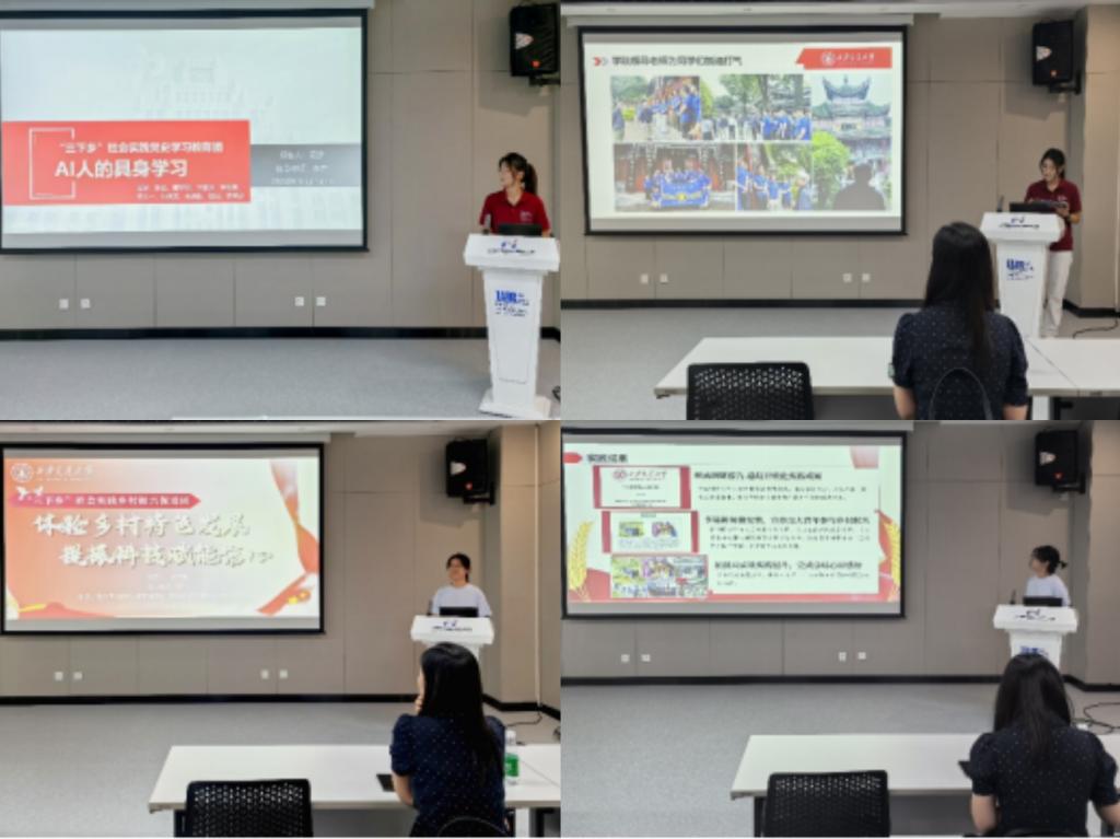 活动伊始,学院老师对各团队的辛勤付出和取得的成果给予了高度肯定,并简要介绍了各团队的实践背景和主要任务。随后,参与此次暑期“三下乡”社会实践活动的四个优秀团队分别围绕自身的实践背景、实践内容和取得的实践成果进行了全方位展示。
