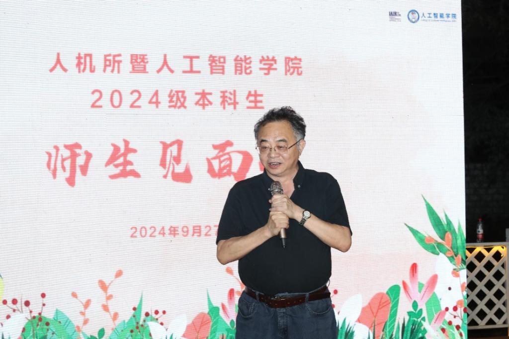 全体教师与2024级本科生在南洋酒店玉兰花园草坪上召开了一次别开生面的师生见面会,学院120余名师生参加。会议还特别邀请北京大学人工智能研究院査红彬教授、我校钱学森书院院务主任田博、网络信息中心副主任刘俊等老师参会,学院党委副书记李杰主持会议。