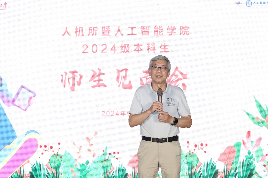 郑南宁教授在新生见面会上致辞。他说,“智慧,从来都是激情的澎湃;创新,必然都是思想的飞翔”。他鼓励新生们勇于探索未知,科学探索与创新要时刻面对不可预见的挑战,迎接挑战意味着要敢走前人不敢走的路,要去解决前人没有解决的问题。他鼓励同学们要主动与学院老师面对面的交流,而老师在育人中也实现了与同学们的共同成长。最后,郑老师祝24级新同学能够在禁漫