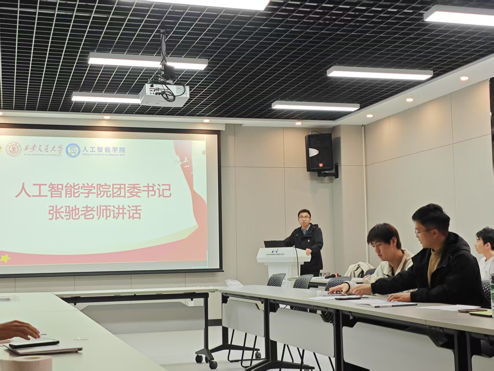 3月12日,人工智能学院团委遴选硕4242班团支部及博士生第二团支部召开两场示范团组织生活会,学院团委书记张驰老师出席会议。会议在庄严的团歌声中拉开帷幕,团支部书记对各自支部过去一年的工作进行了全面总结,深入分析了工作中取得的成效与存在的不足,并汇报了问题改进情况。党员代表、入党积极分子代表也分别结合自身经历,分享了对加强党团共建、履行团员责任以及发挥先锋模范作用的思考与感悟。