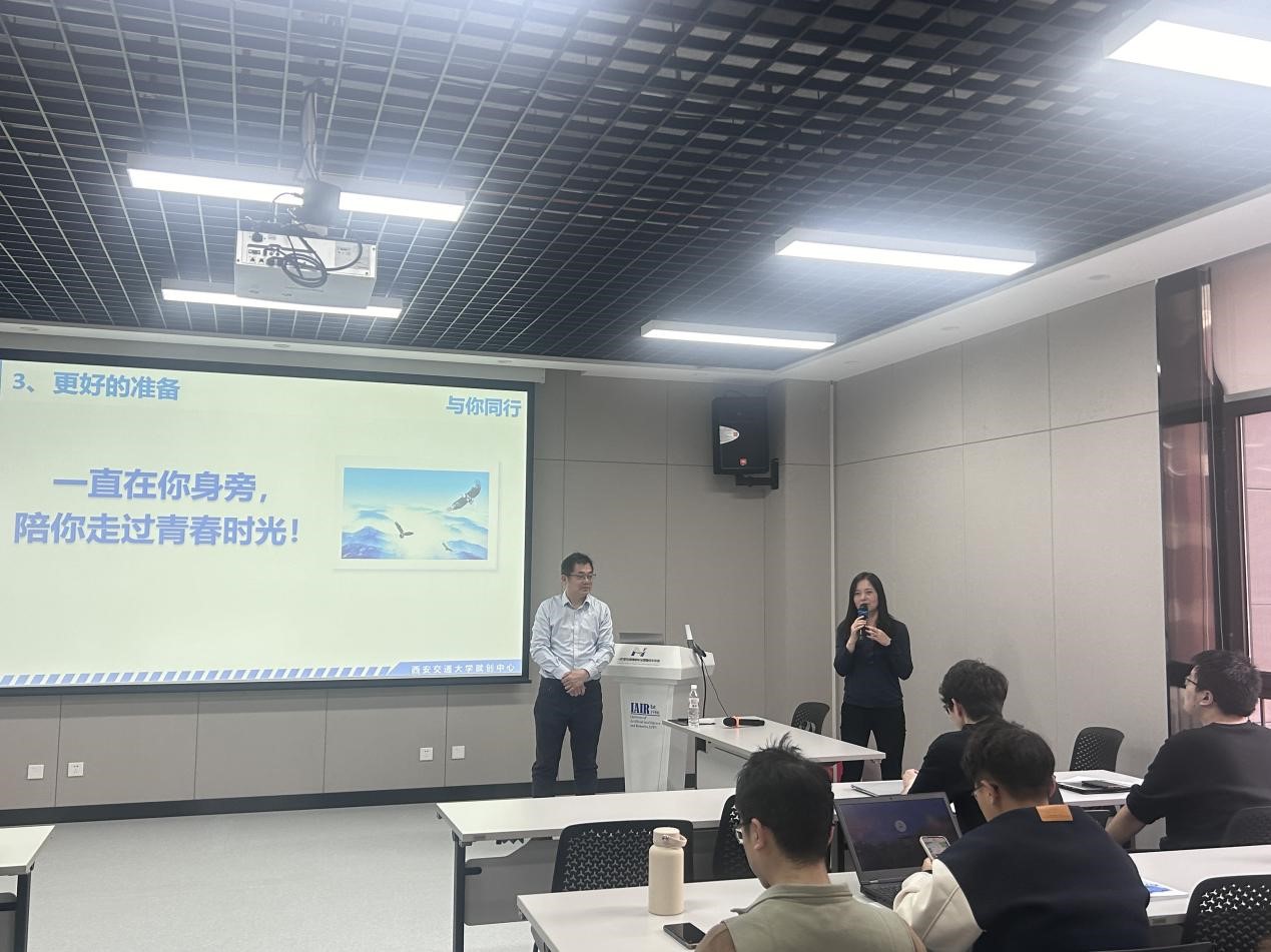 党委副书记李杰老师对主讲嘉宾进行了介绍。本次讲座特别邀请到了在职业生涯规划领域有着丰富经验的就业中心副主任沈人杰老师。沈主任拥有多年的职业生涯发展规划经验,曾为众多研究生同学提供职业规划指导,享有较高声誉。