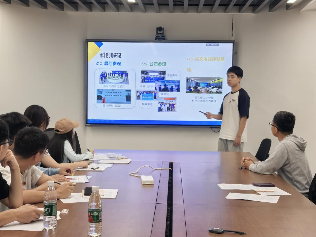 本次答辩会的3支实践团队于今年7月中旬至8月初分赴江苏苏州、陕西周至、上海浦东、云南丽江、山西盂县、江西崇仁、甘肃民勤等地,累计走访企业、园区、乡村、博物馆等调研点21处,发布新闻共8篇。三支队伍分别围绕“苏智同行产业调研”“智企探秘红色实践”“为AI赋能乡村振兴”等主题,通过PPT展示、现场问答等形式,全面汇报了实践过程、调研成果与个人收获。