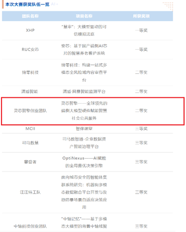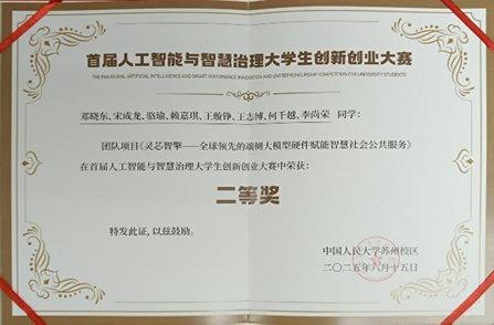 邓晓东灵芯智擎创业团队摘得二等奖一项,展现了人工智能学子在人工智能领域的卓越实力。